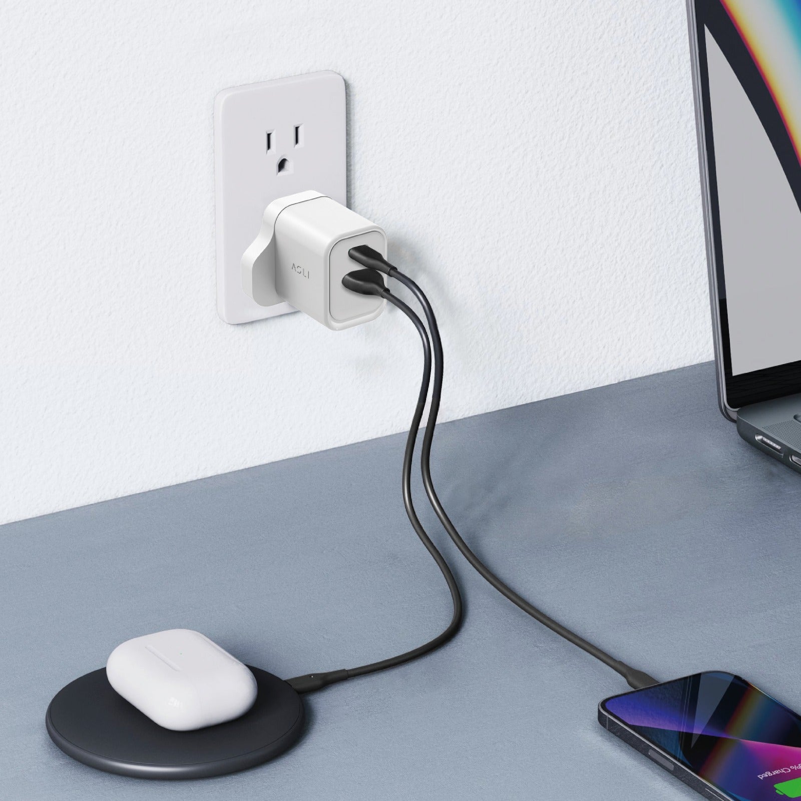 Asli Global ThunderVolt Surge 33W Power Delivery GaN Dual USB Wall Charger | White