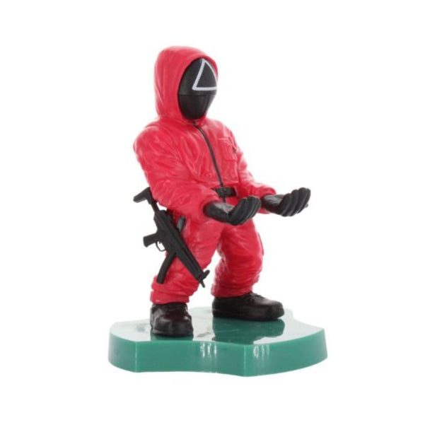 A mini phone holder featuring the Triangle Guard character from Squid Game. Designed to hold smartphones securely on desks or shelves for daily use or display.