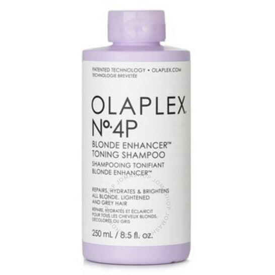 A vegan, highly concentrated purple shampoo. Cleanses, tones & repairs while keeping hair hydrated from roots to ends. Creates a rich lather to neutralize brassiness & boost brightness after one use. Scientifically proven to make hair three times brighter than other top purple shampoos. PH-Balanced. Free of DEA, aldehydes & formaldehyde. Cruelty-, gluten-, nut-, paraben-, phosphat-e, phthalate- & sulfate-free. Suitable for blonde, lightened, grey hair & all hair types. Design house: Olaplex. Series: No. 4P Blonde Enhancer Toning Shampoo. Gender: Unisex. Category: Hair Care. SubType: Shampoos & Conditioners.