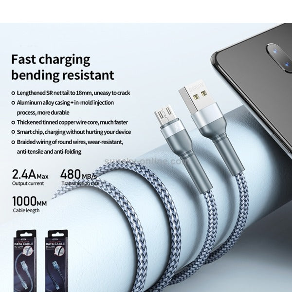 REMAX RC-124m 1m 2.4A Aluminum Alloy Braided USB to Micro USB Cable