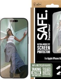 SAFE. is for real. SAFE. is for you. SAFE. is for dance floor mishaps, selfies gone wrong and your everyday fumbling, dropping and screen cracking. This SAFE. by PanzerGlass®️ screen protector made of 60% recycled material acts as a discrete airbag, protecting your phone by absorbing impacts and providing high-level scratch resistance without compromising the functionality and look of your device. It even has a smudge-free coating that reduces traces of fingerprints and grease.